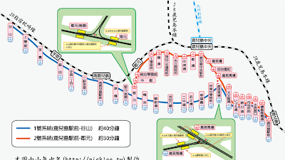 好像吃了一個餐,飛一個半小時,我們在日本時間16:30就到了,超快的, 因此很幸運地趕上5點出頭的車從宮崎機場坐三分鐘到南宮崎,然後再轉大約兩個小時到鹿兒島(這已經是到鹿兒島的倒數第2個車次) 兩個人票價加起來好像是日幣5140