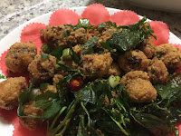 金沙花枝,這個外邊是裹鹹蛋 吃起來粉粉的~ 好吃