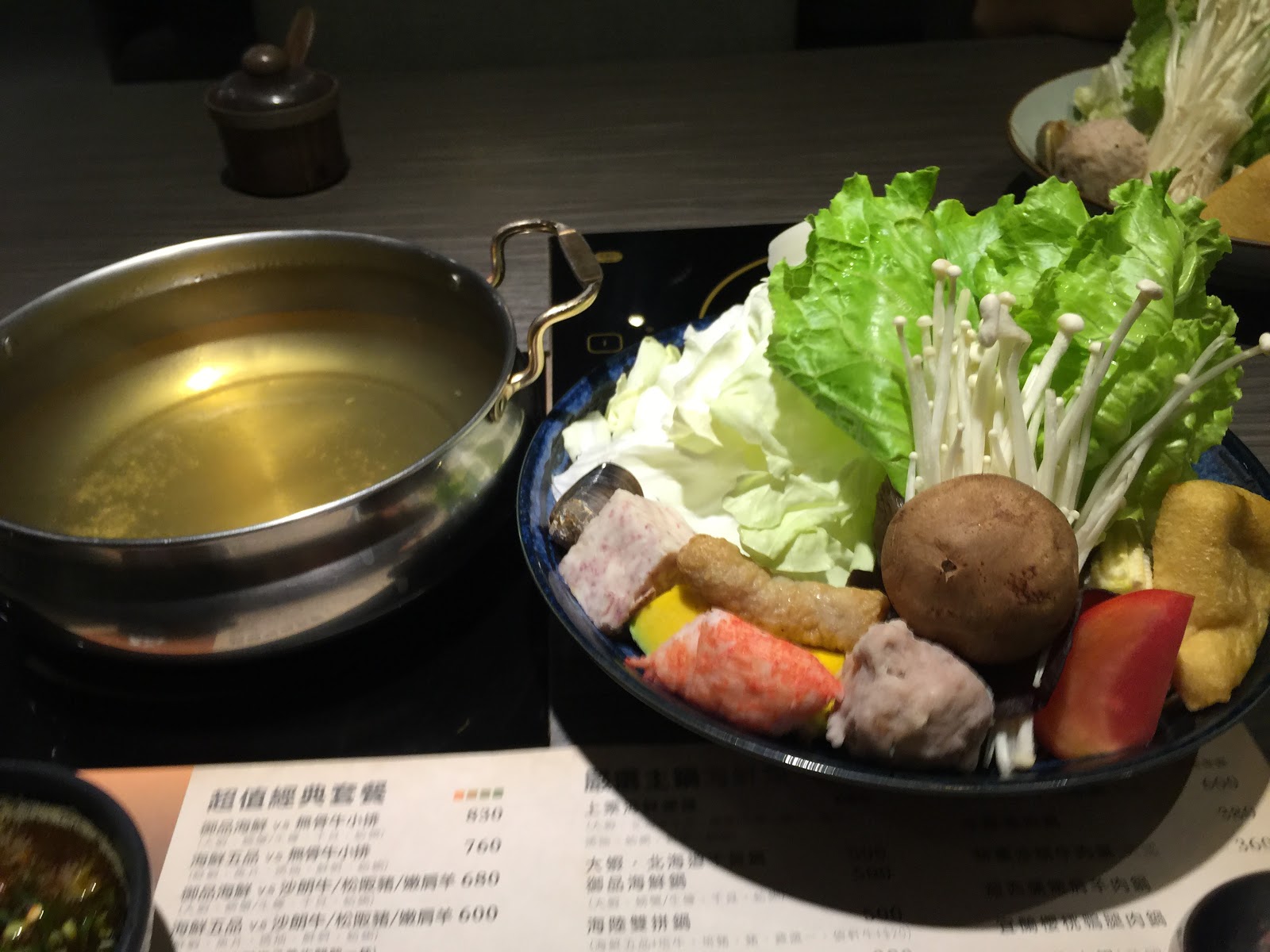 中規中矩的菜盤 和清爽的昆布湯頭 隨著材料加入會越來越好喝~